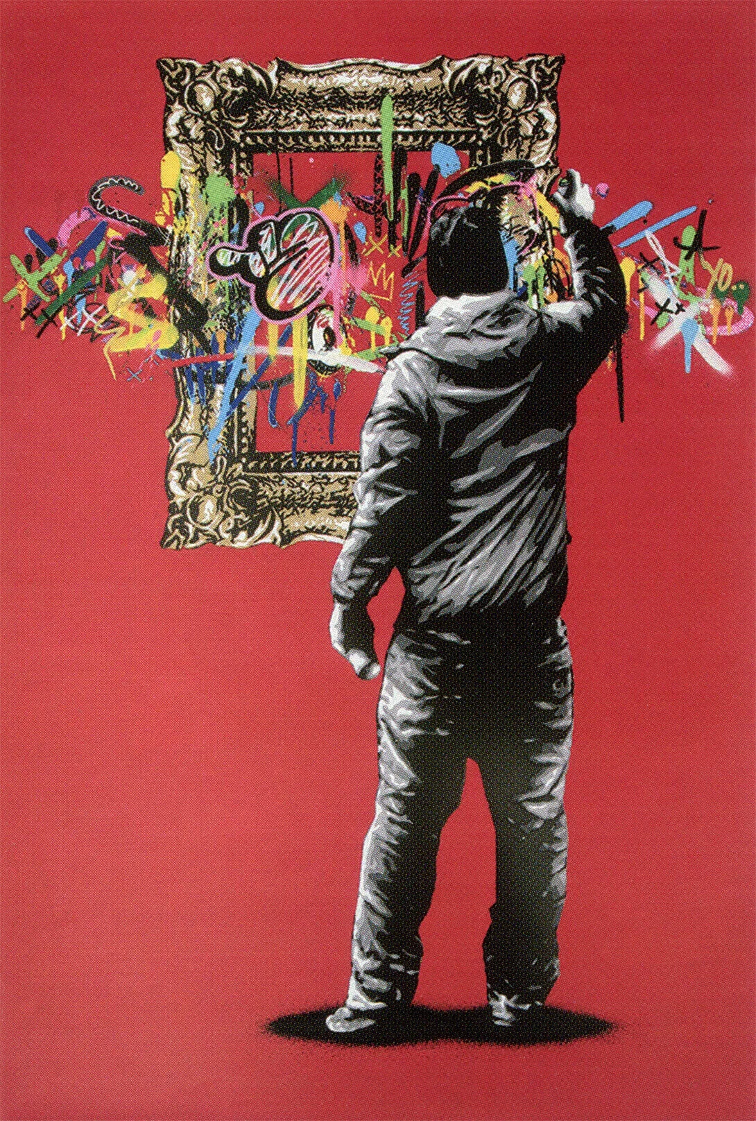 Martin Whatson is a Norwegian street artist best known for his calligraphic scribbles in grayscale voids. Over the past decade, Martin has developed an unmistakable aesthetic combining abstract movement with figurative stencilled compositions. His works can be seen to mirror the rise and fall of the streets, as he symbolically recreates the urban environment, then vandalises it to reveal his vibrant transformations.